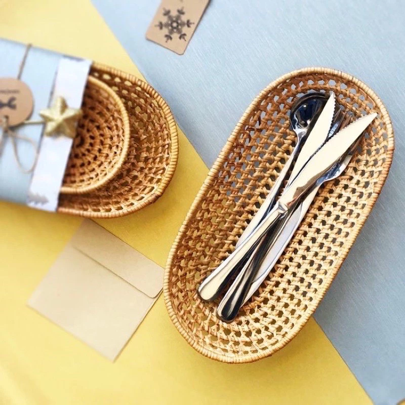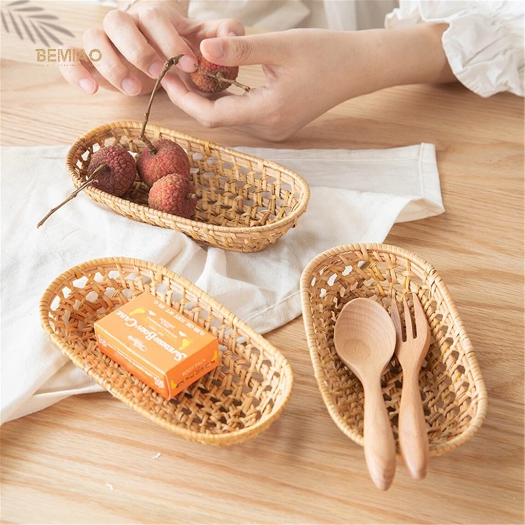 • 食品や果物の盛り付けに: 新鮮な果物、朝食のパン、ドライフルーツなどを美しく飾れます。籐の通気性が食品を新鮮に保ち、湿気をこもらせません。