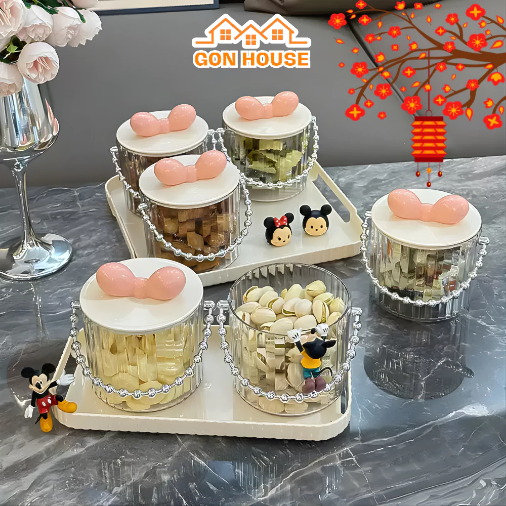 GON 2026 Tet Limited Edition Pink Bow-Lid Clear Storage Jars (Set of 2) with Handle - For Snacks, Dried Fruits & Nuts