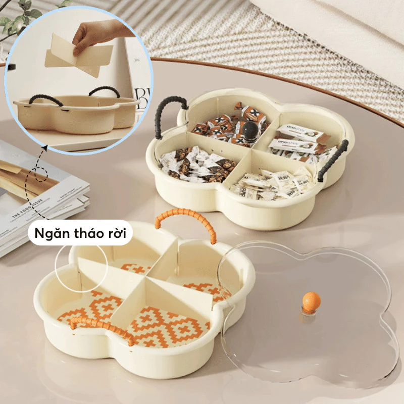 GON Luxury Flower Shaped Snack & Fruit Tray with Lid - Modern Detachable Compartment Plate