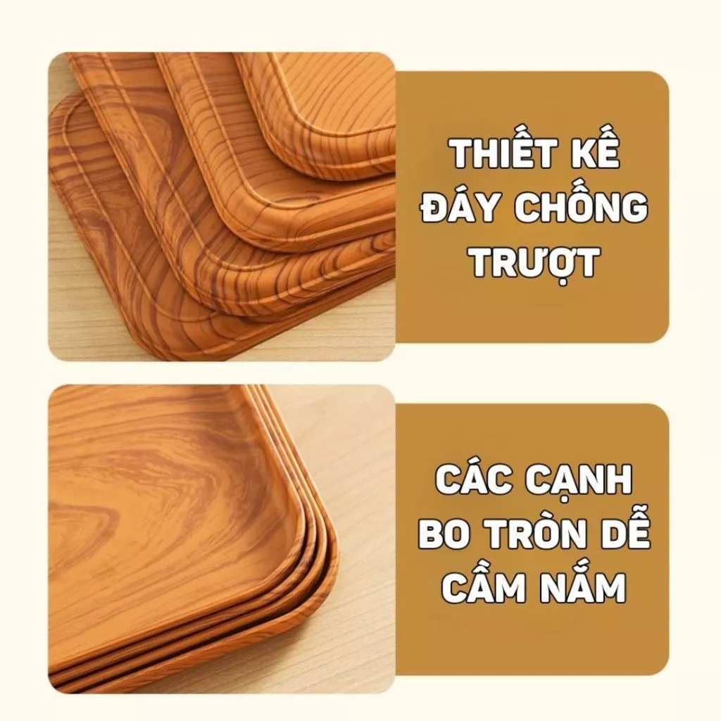 GONHOUSE 木目調プラスチック製長方形トレー 中サイズ | カップ置き・お茶テーブル装飾にの通販・個人輸入代行販売商品