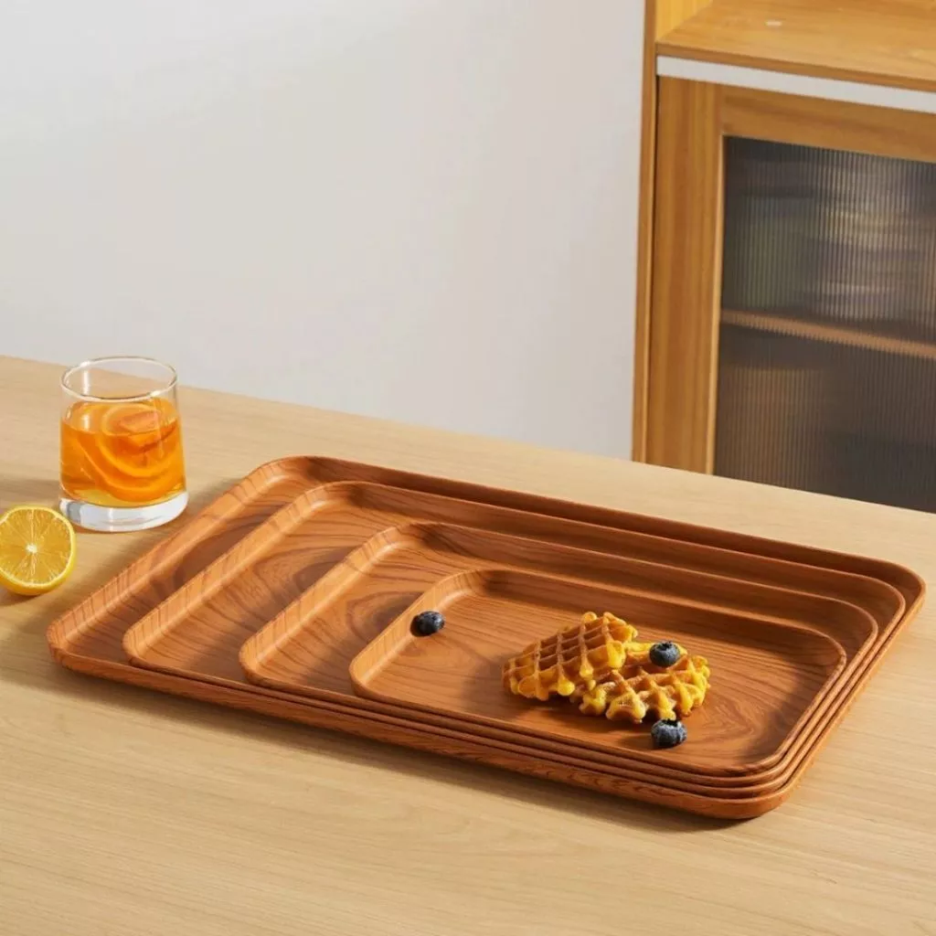 GONHOUSE Medium Size Rectangular Wood Grain Plastic Tray | Cup Holder & Tea Table Decor
