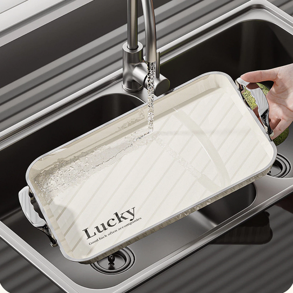 - 移動が簡単: 軽量なABS樹脂と頑丈な取っ手のおかげで、トレイの中身をこぼす心配なく、キッチンからバルコニーや庭まで簡単に移動できます。