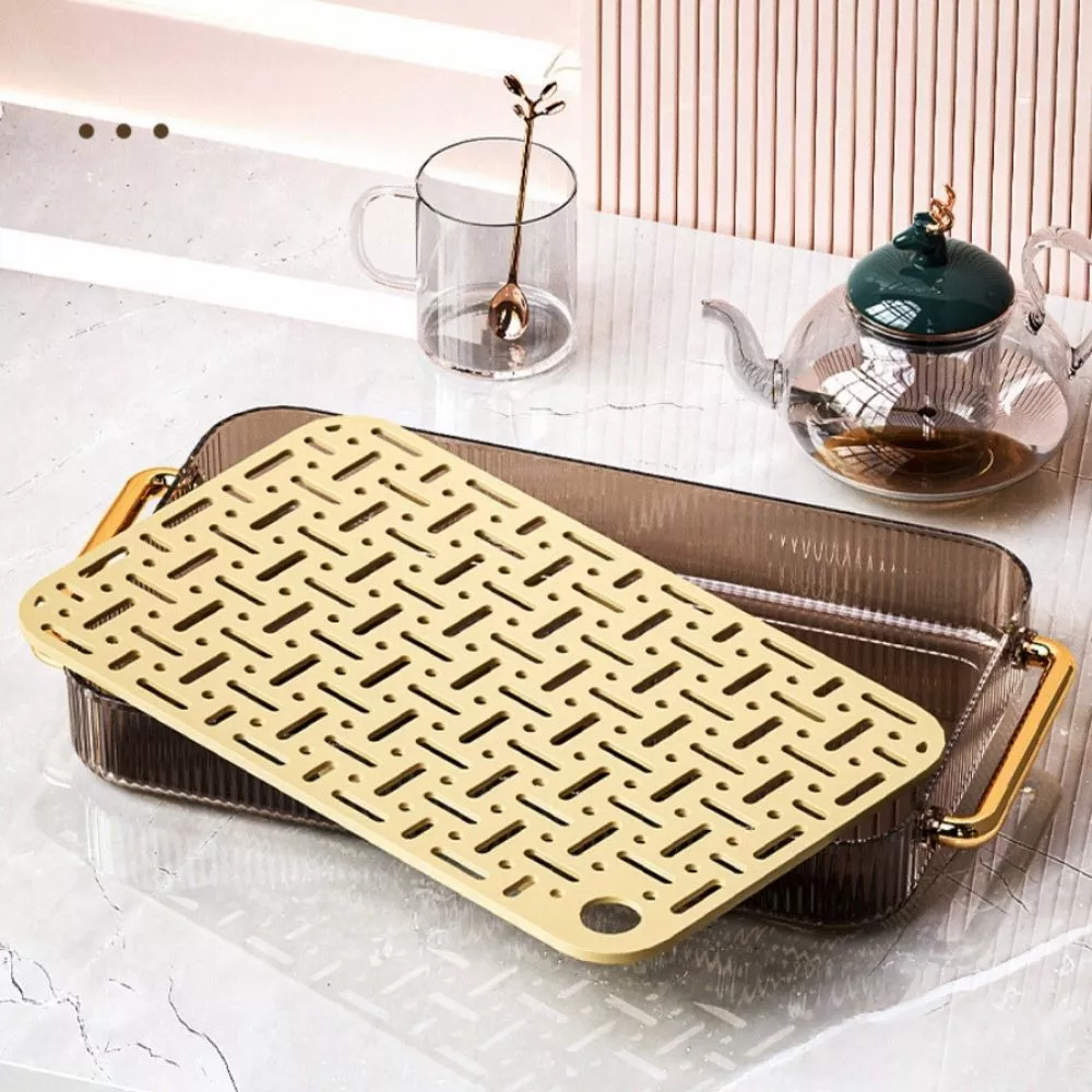 - 豪華な金/銀メッキの取っ手: トレイの両側には、安定した持ち運びを可能にする頑丈な取っ手が装備されています。これは製品全体にエレガントで高級感のあるアクセントを与えます。