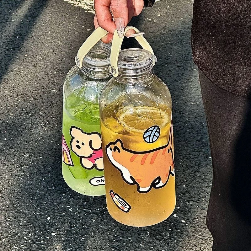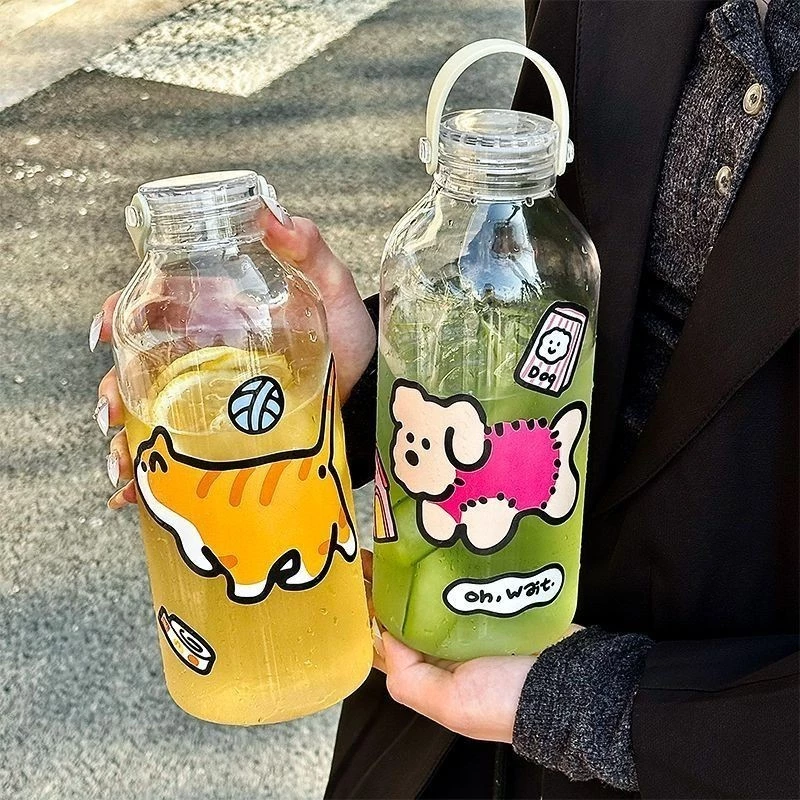 猫デザイン透明ウォーターボトル 1L ステッカー付き 肩掛け・通学・通勤に便利の通販・個人輸入代行販売商品