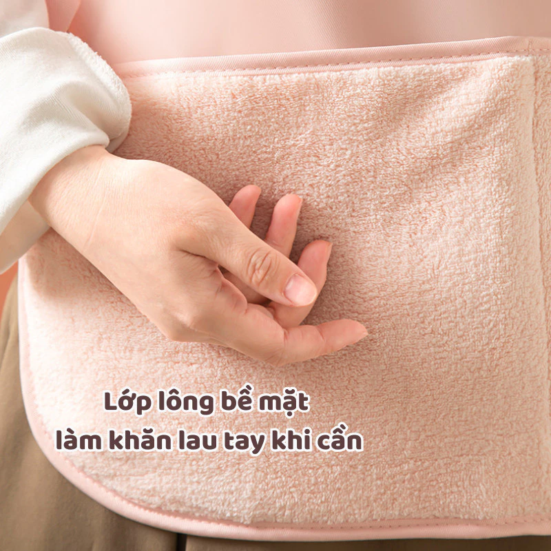 Smart Multi-functional Pink Waterproof Oil-proof Apron with Pocket and Quick-Dry Hand Towel