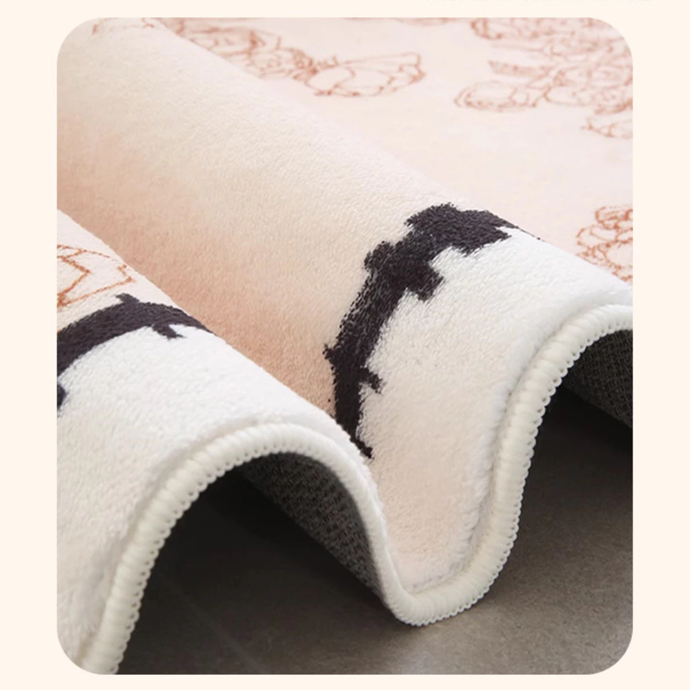 このカシミア風羊毛長尺ラグは、高級織物技術と現代的な装飾思想の精巧な融合です。特徴的な長尺デザインにより、ベッドの横や寝室の入り口に沿って配置するのに最適です。最も魅力的なポイントは、手描きの浮遊感あふれる漫画風の模様です。ぽっちゃりとしたクマから鮮やかな花々まで、ポジティブなエネルギーとリラックス感に満ちた休息空間を創造します。