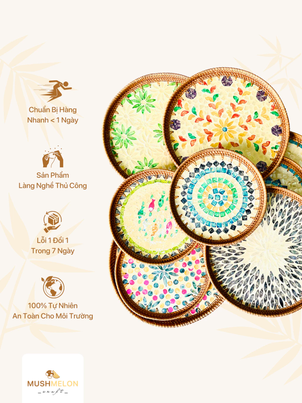 「Khay Mây Khảm Trai Size 40cm」は、日常のささやかな活動の中に芸術が息づいていることを証明しています。この製品を所有することは、単なる道具を所有するだけでなく、細部へのこだわり、自然への愛情、そしてベトナムの伝統工芸への誇りの物語を所有することなのです。