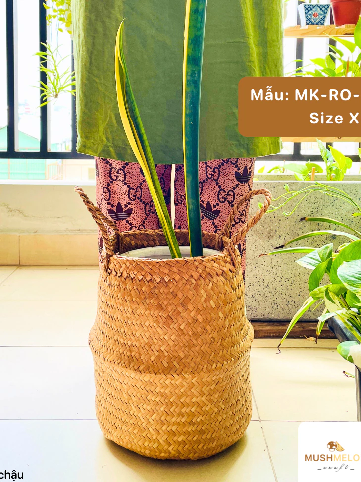 - 使用方法:植木鉢カバーとして使用する際は、イグサ繊維が直接水に触れて湿るのを防ぐため、鉢の底に受け皿を置いてからかごに入れてください。輸送中に形が崩れた場合は、手で優しく形を整えるか、中に物を入れておくと、自然にきれいな丸い形に戻ります。