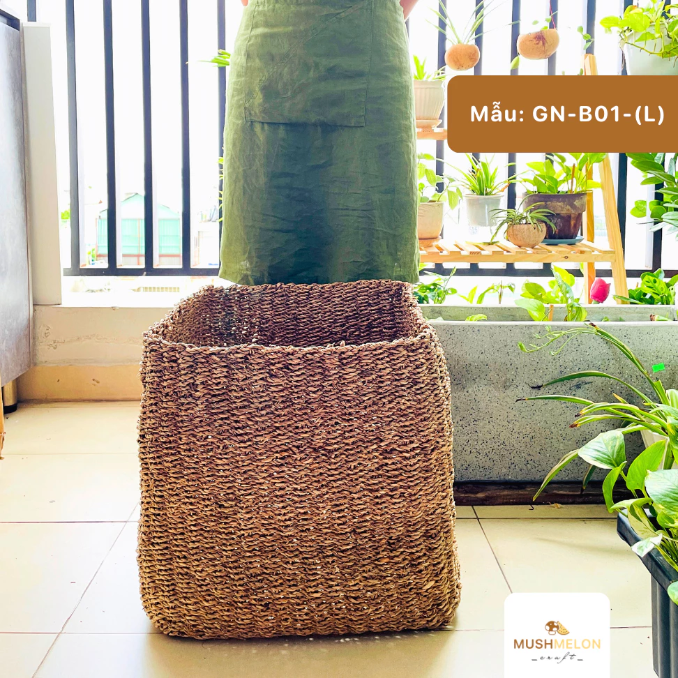 このLサイズ 手編みシーグラス スクエアバスケットは、美しく、実用的で、環境に優しいという持続可能なライフスタイルを象徴するアイテムです。