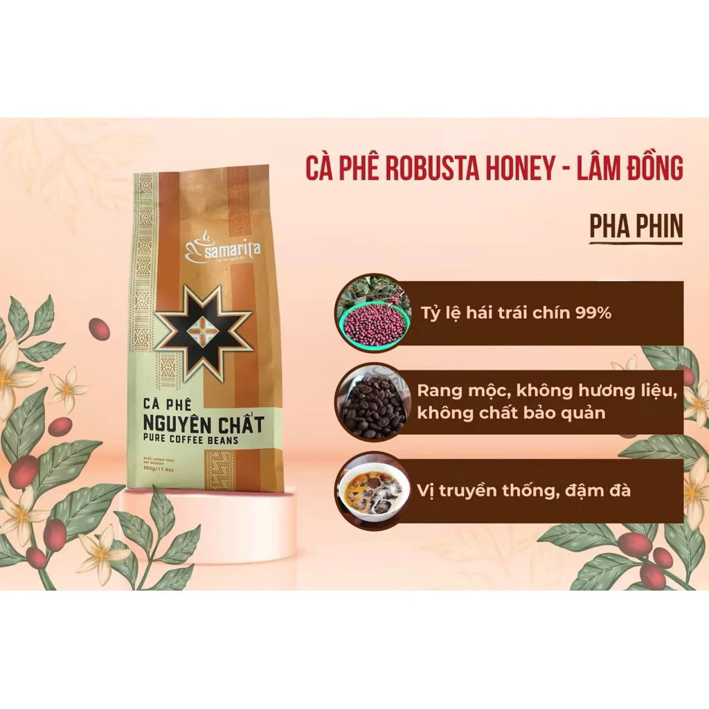 1000g Lam Dong Robusta Honey Coffee Beans - Single Origin, Medium Roast, Aromatic, Low Bitterness, Sweet Aftertaste