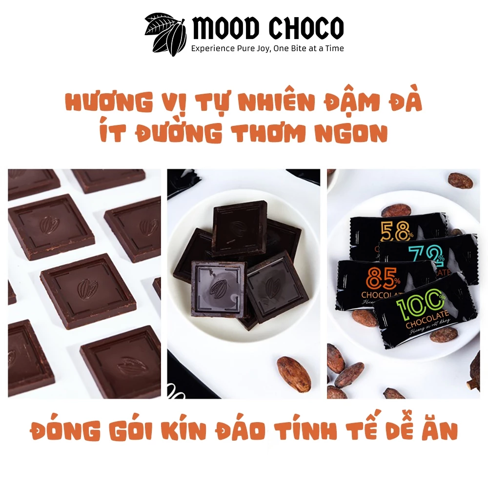 MOOD CHOCO 58% Dark Chocolate Box of 24 | Pure Sweet & Mildly Bitter, Low Sugar