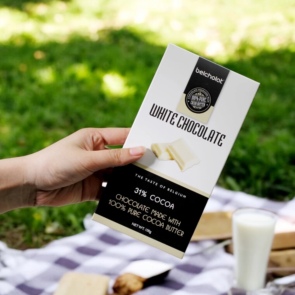 Belcholat White Chocolate Bar (100g) 31% Cacao Butter - Smooth & Creamy Milk Flavor