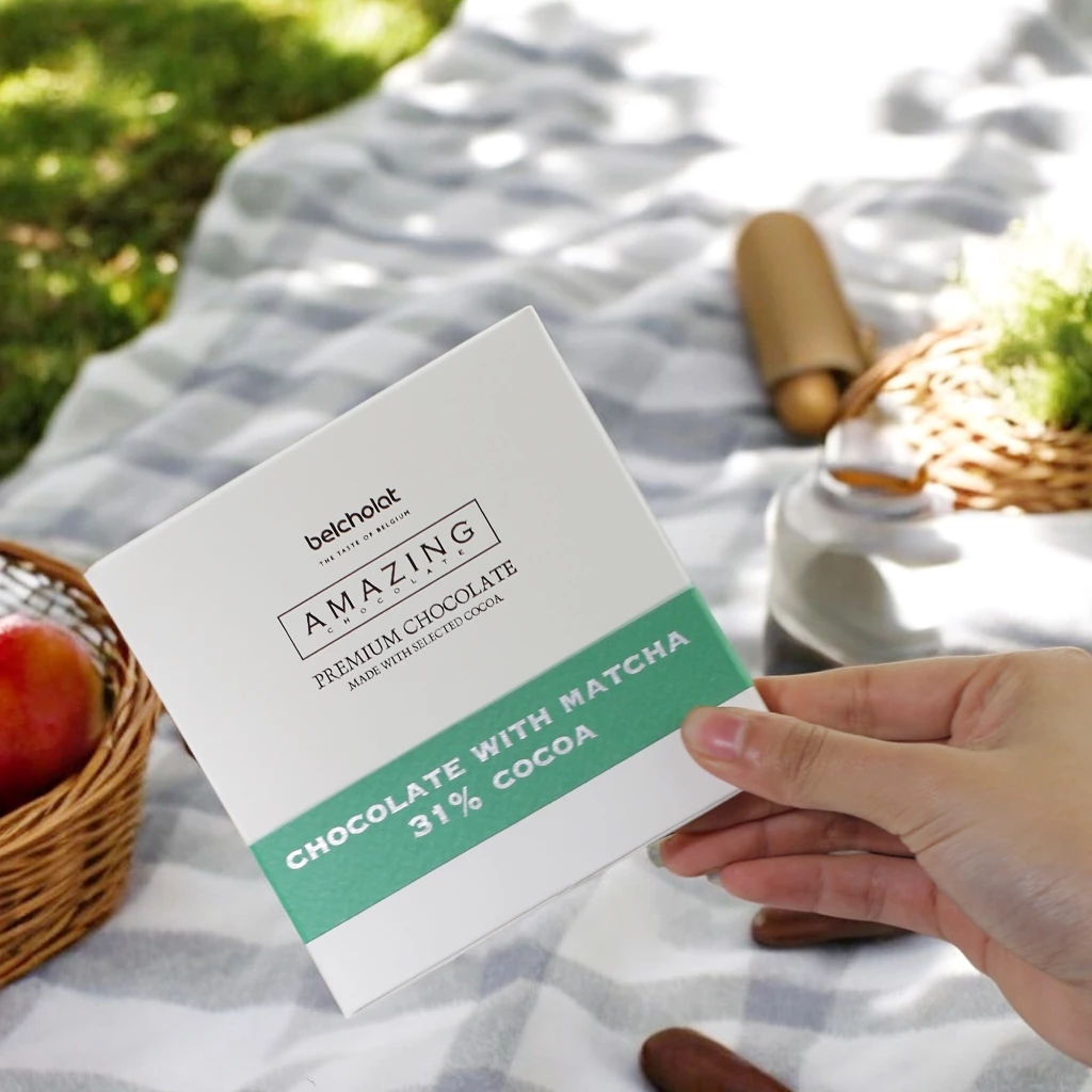 Belcholat Amazing Matcha Chocolate 31% Cacao - Smooth Melt, Mildly Bitter, Refreshing Spring Flavor, Elegant Gift