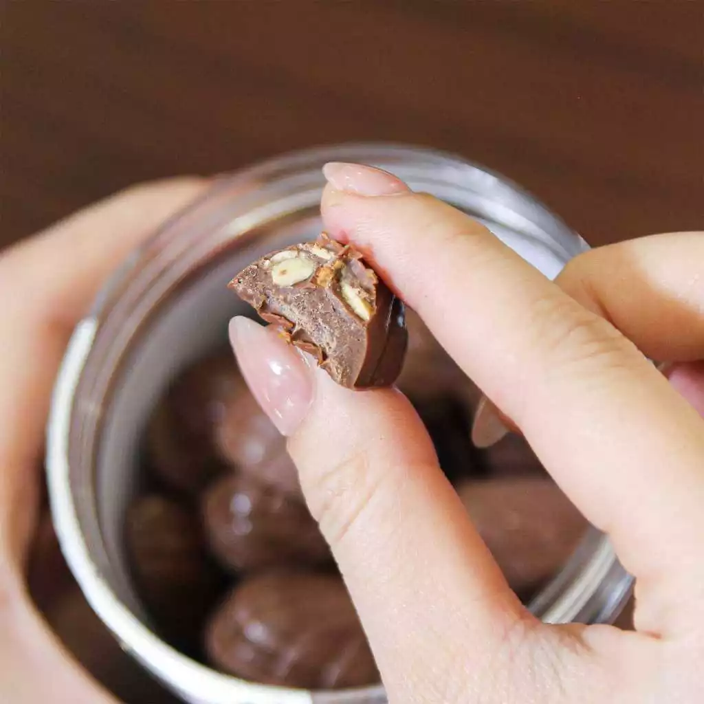 ・高温多湿を避けてください:乾燥した場所で、理想的な温度は18℃〜24℃です。チョコレートが溶けると、ナッツのサクサク感が損なわれる可能性があります。