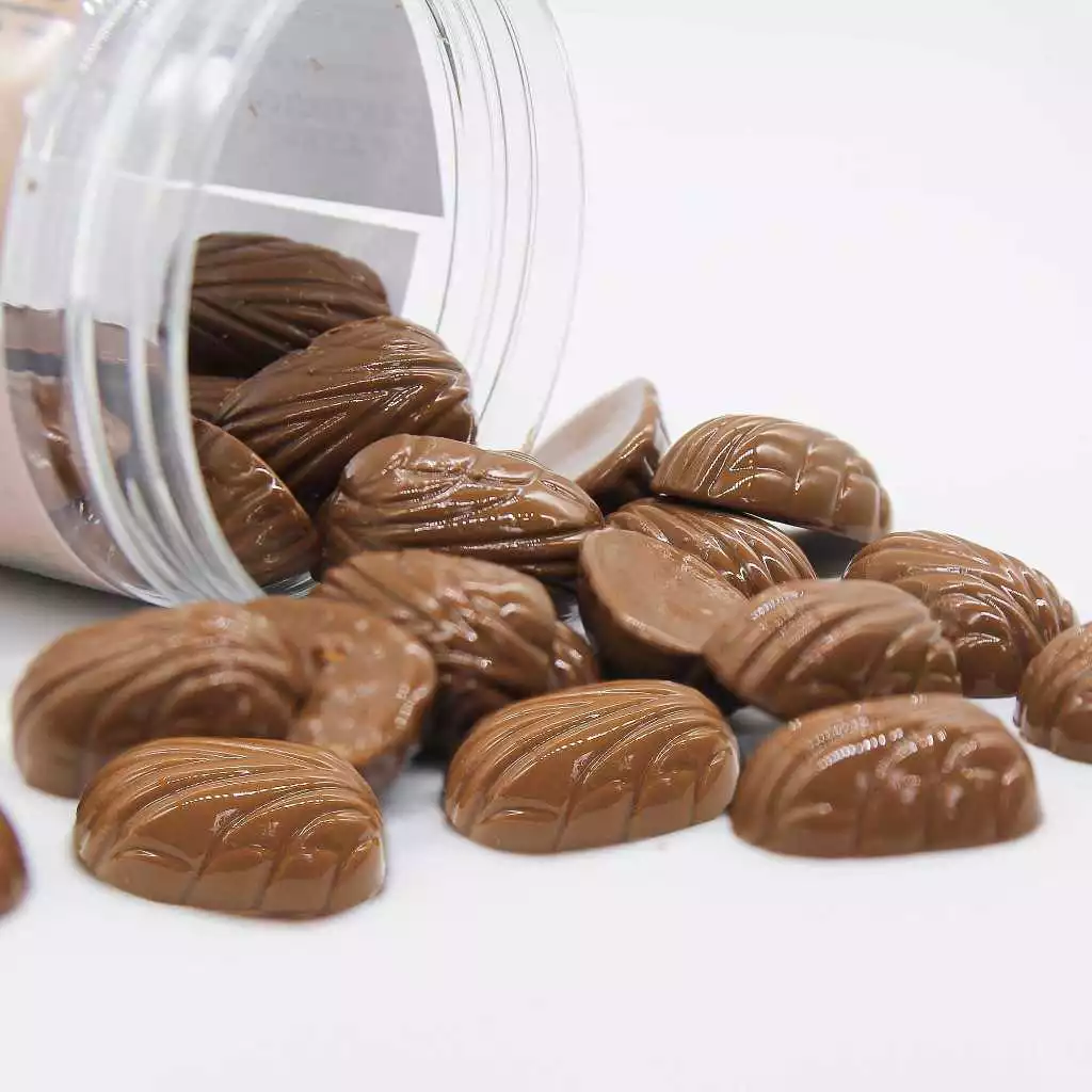 純粋なミルクチョコレート(高品質なカカオバターとカカオマス)、ローストナッツ(アーモンド、カシューナッツ、ピーナッツなど)、天然麦芽糖、純粋な海塩。ナッツ由来のタンパク質、健康的な脂肪、マグネシウム、ビタミンE、抗酸化物質が豊富に含まれています。