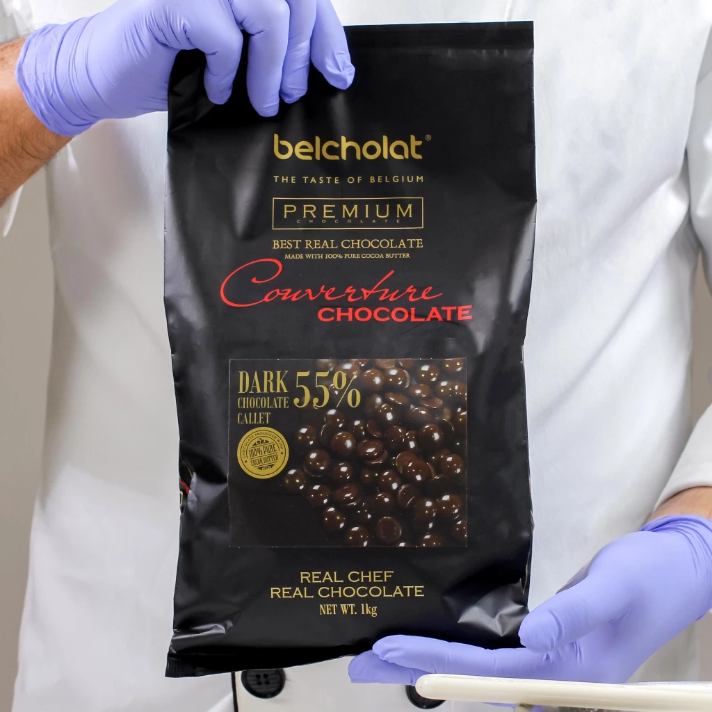 Belcholat Dark Couverture Callet Chocolate 55% Mild Bitter 1000g for Hotels, Bakeries, Cafes