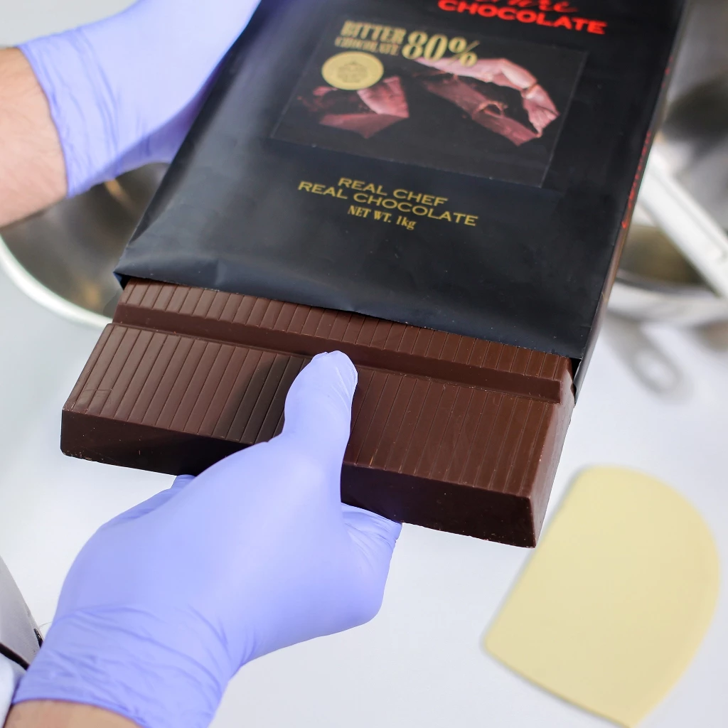 高カカオ含有量のため、この80%チョコレートは、シェフが繊細な技術で扱う必要があります。