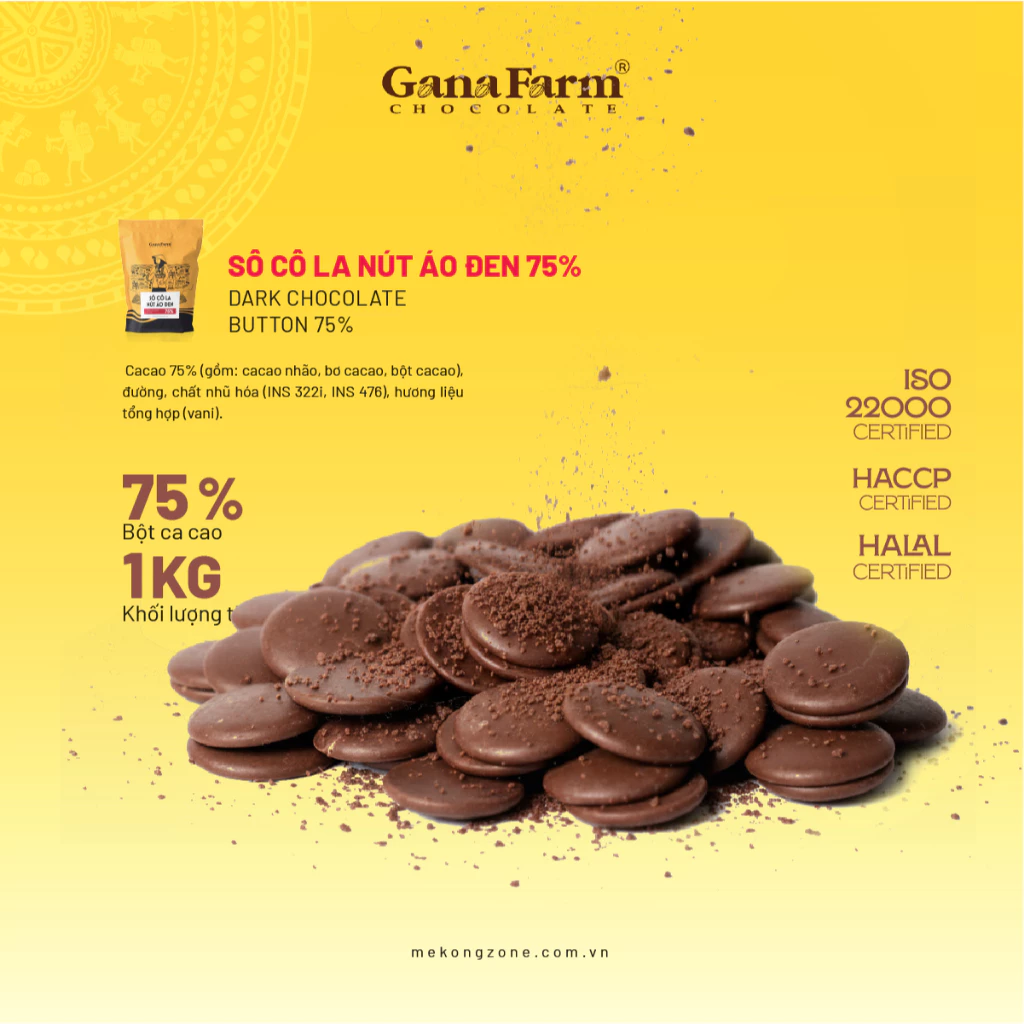 「3kg 75%ダークチョコレートボタン原料」は、製菓職人や真のチョコレート通のために特別に作られた、魅惑的なカカオ体験を提供する製品です。