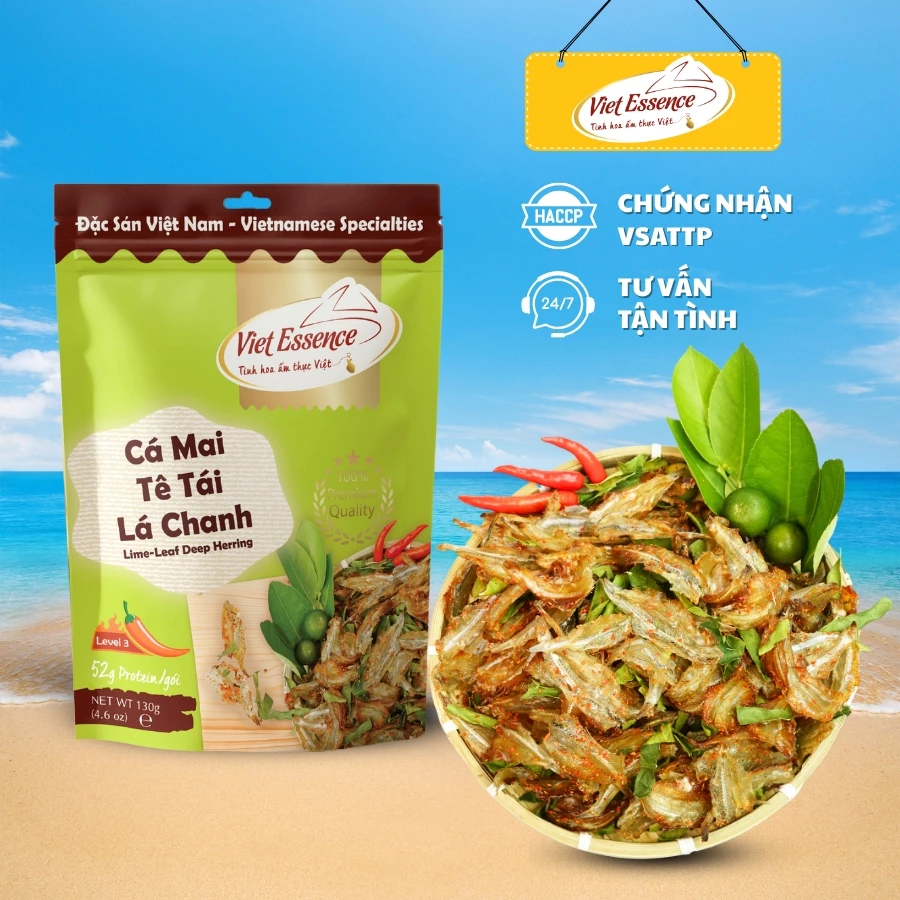 Viet Essence "Te Tai" Lime Leaf Anchovy Snack - Spicy & Refreshing Dried Fish with Kaffir Lime (130g)