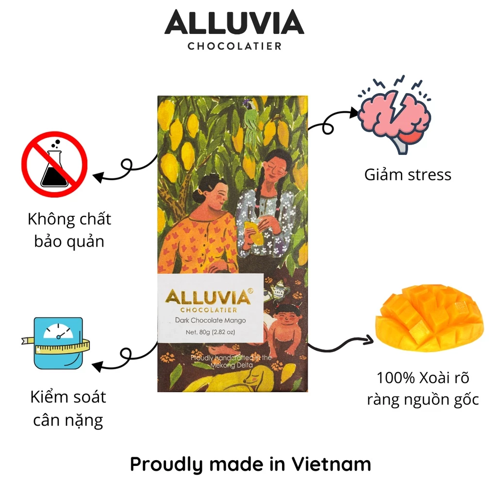 食通たちの世界では、チョコレートは単なるスイーツではなく、感情の言葉です。Alluvia 70%カカオ ダークチョコレート マンゴー入りは、メコンデルタの肥沃な土壌の風味と、南国のフルーツの鮮やかさが織りなす「愛の歌」そのものです。80グラムの洗練された一粒は、力強い苦みと上品な甘さの完璧なバランスを求める人々への贈り物です。