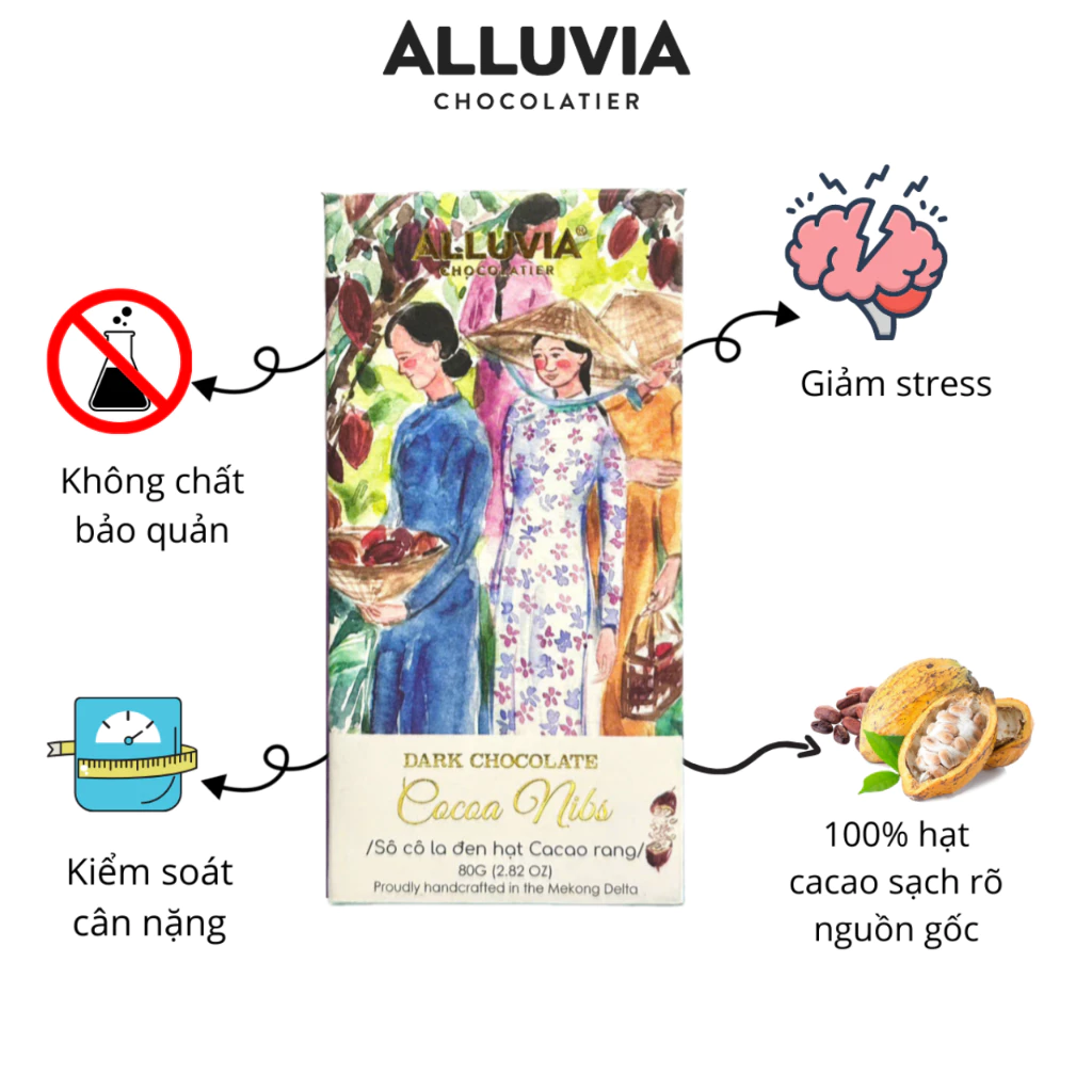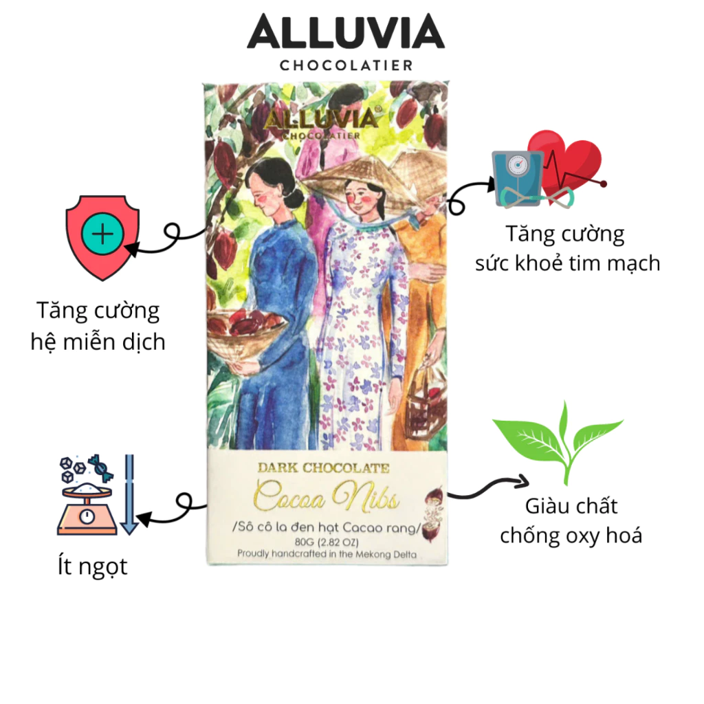 Alluvia Pure Dark Chocolate 70% Cacao with Roasted Cacao Nibs (80g)