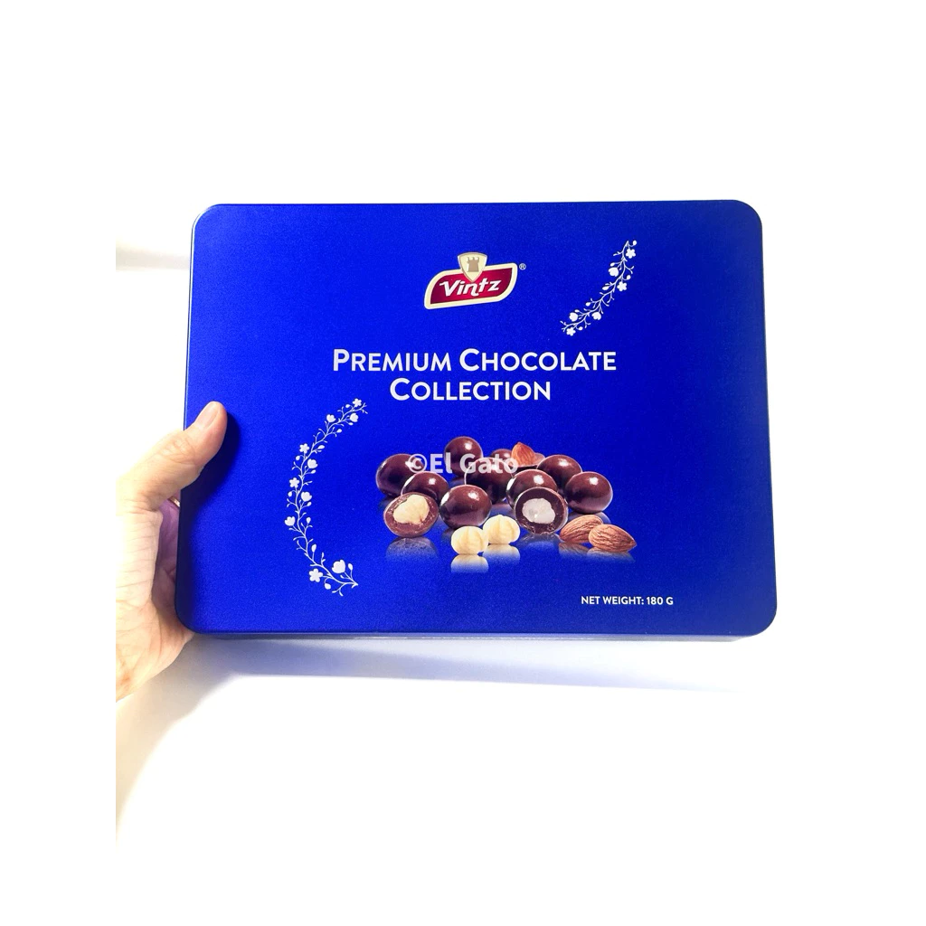 Vintz Premium Chocolate 160g Malaysia, Luxury Blue Tin Box, 3 Assorted Flavors Gift Set