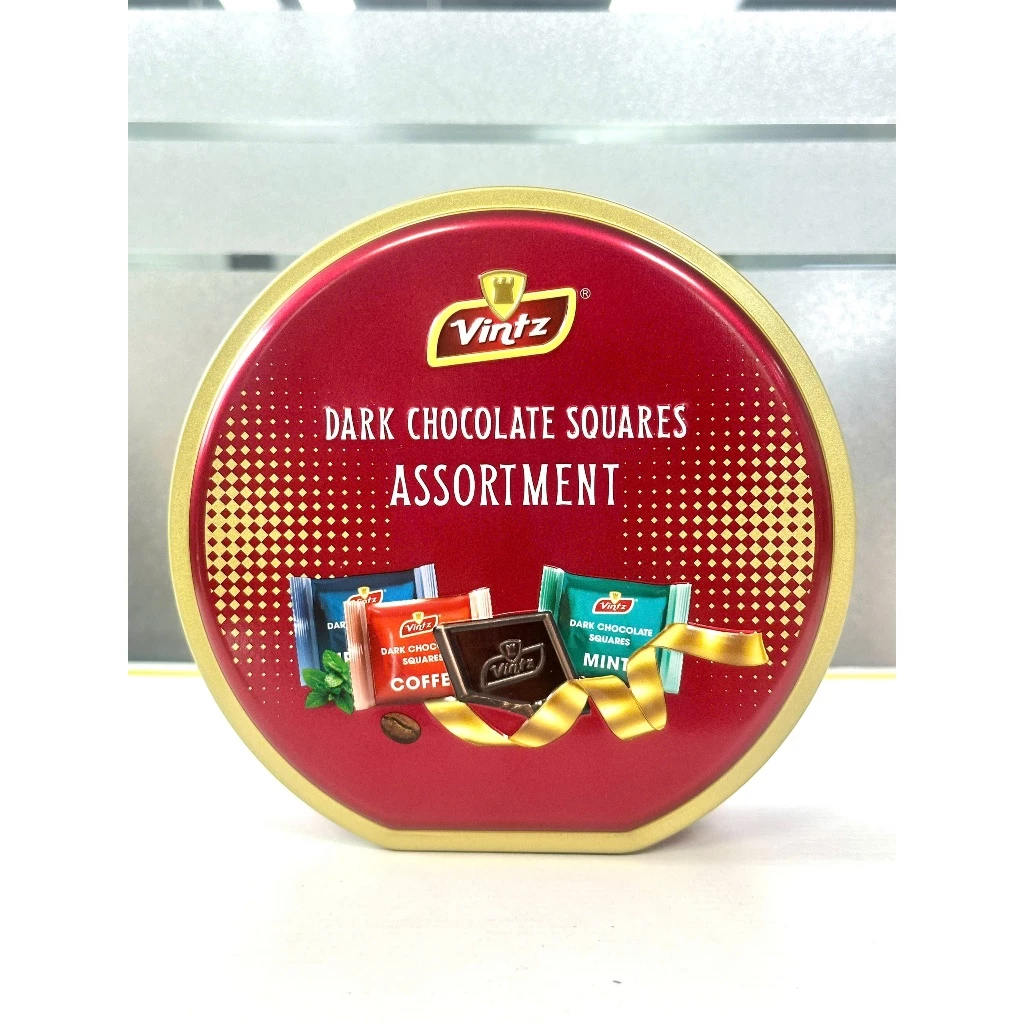 Vintz Squares Chocolate (Red/Mixed) Round Can 110g, Made in Malaysia
