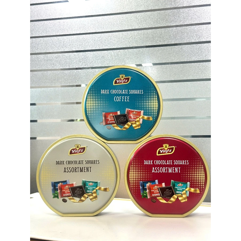 Vintz スクエアチョコレート 丸型110gは、モダンなデザインと伝統的なチョコレートの風味が見事に融合した逸品です。通常の丸い粒や大きなブロックとは異なり、繊細な薄い四角い形に仕上げられており、非常に上品な口どけが楽しめます。このコンパクトな丸い缶は、チョコレートをしっかり保護するだけでなく、ティーテーブルやバッグの中でも目を引くおしゃれなデコレーションになります。軽やかでありながらも品格を保ちたい方にぴったりの選択肢です。マレーシアは菓子製造において厳しい基準を持つことで知られており、このチョコレートもその高い品質を証明しています。