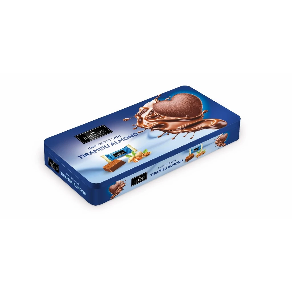 Romanze Tiramisu Almond Chocolate Blue Heart Tin 135g Malaysia
