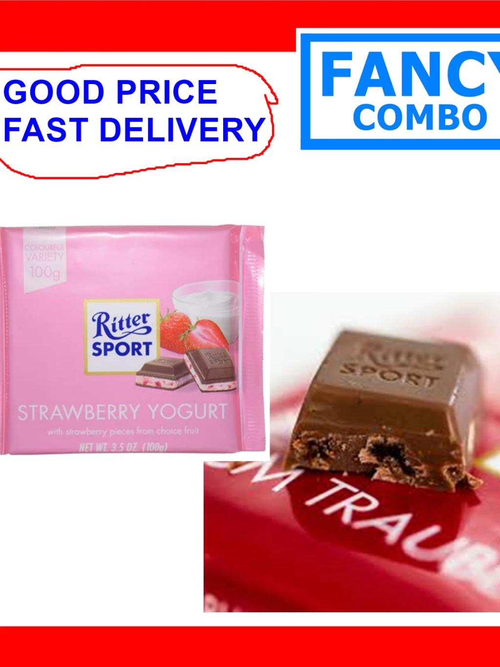 Ritter Sport Strawberry Yogurt Chocolate 100g German Imported Product