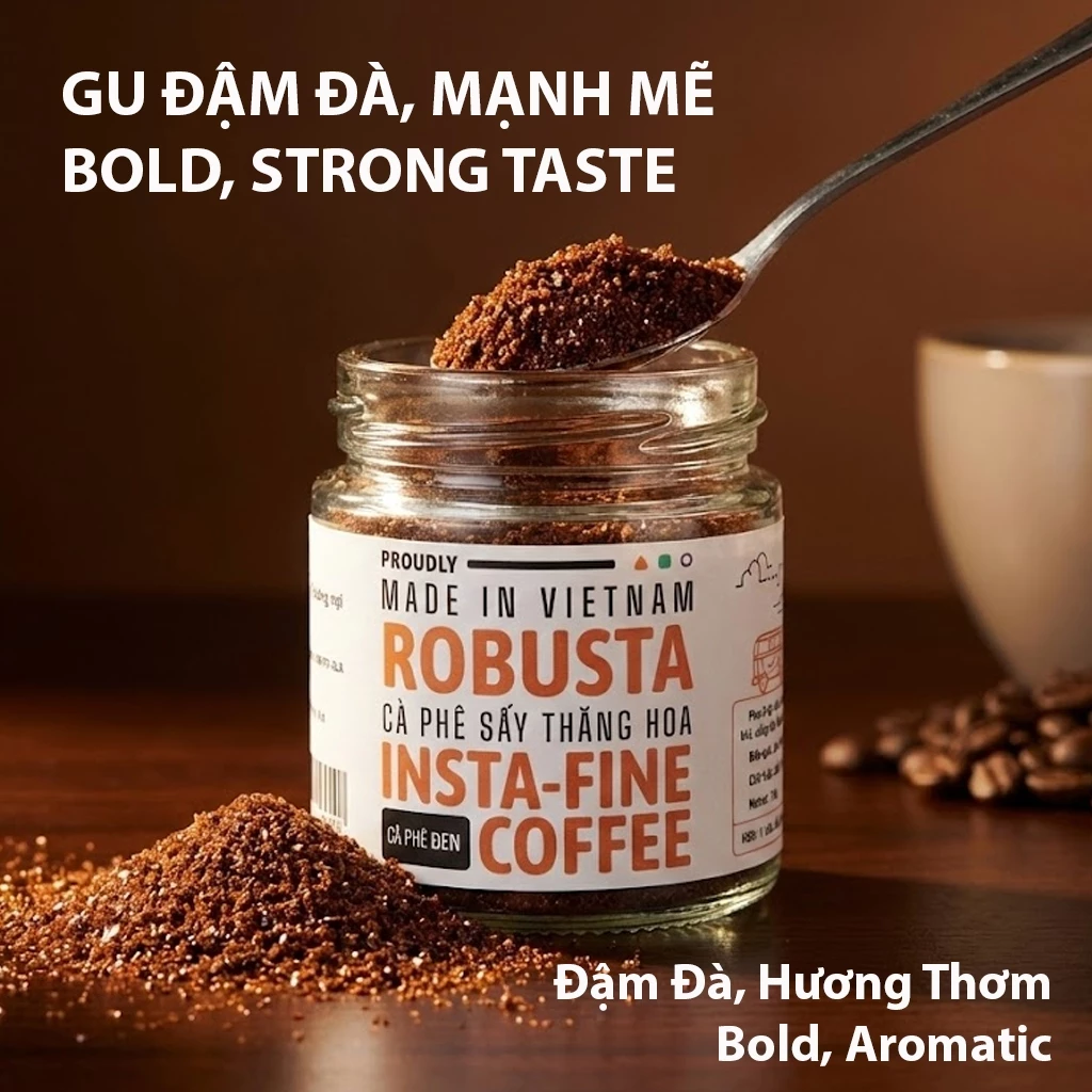 Insta-Fine Black Instant Coffee 100% Fine Robusta (Cold Brew Compatible) – Bold Taste, Instant Alertness