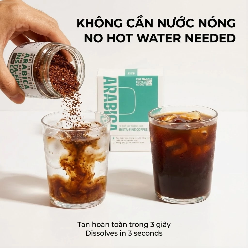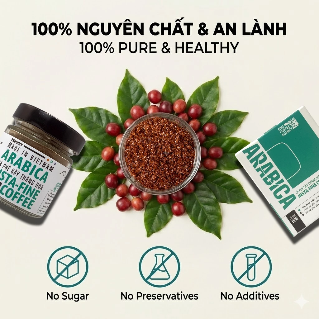 Insta-Fine 100% Arabica Cau Dat Freeze-Dried Black Instant Coffee (Cold Brew Style) – Floral & Fruity Aroma, Bright Acidity