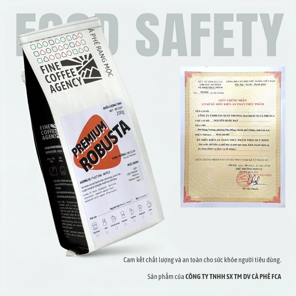 Gia Lai Premium Robusta Coffee Beans (95% Ripe) - 200g - Cacao & Almond Flavor - Rich & Smooth