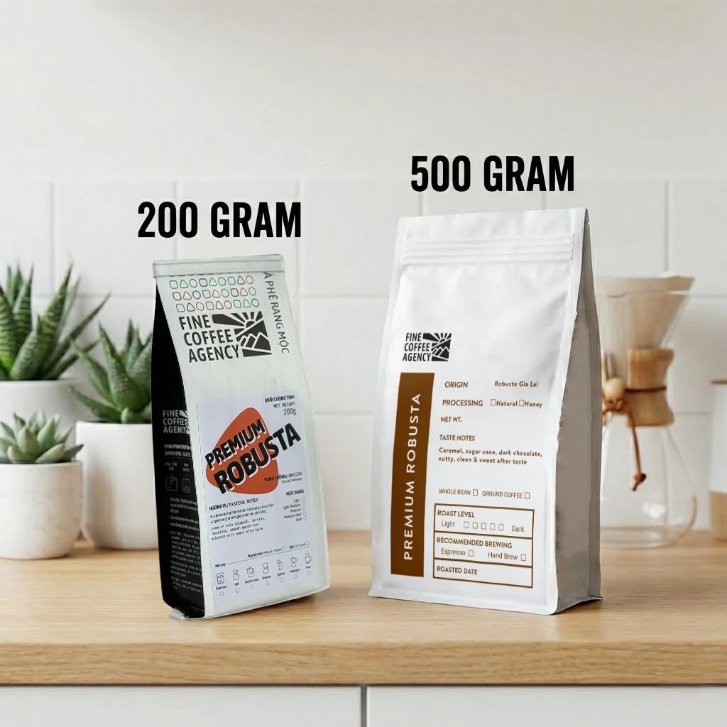 Premium Robusta Coffee Beans from Gia Lai (95% Ripe) - Espresso Medium Roast 200g Bag - Cacao & Almond Flavor - Rich & Smooth