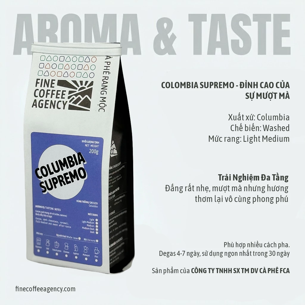 Colombia Supremo Arabica Ground Coffee 200g - Light Roast, Washed Process - Floral, Raspberry & Herbal Aroma