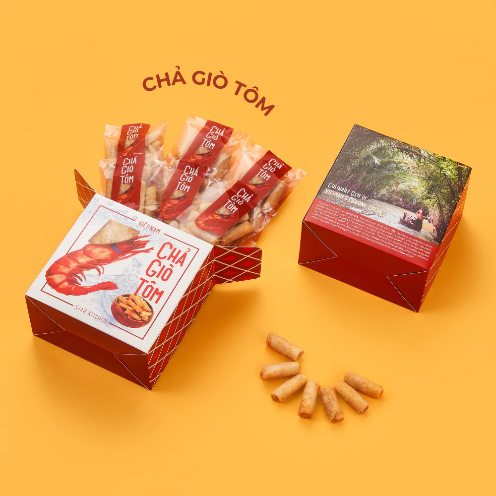 伝統的なチャージョーは、お祝いの席やお正月に出される特別な料理で、巻く工程や揚げる工程に細心の注意を払う必要があります。STAR KITCHENは、最先端の乾燥技術を用いてこの料理を再構築しました。一つ一つ丁寧に作られた可愛らしいミニサイズのチャージョーは、その形を保ちつつも、皮から具材まで完全に新しい「サクサク」とした食感を実現しました。120gという手軽な容量でスタイリッシュにパッケージされたこの商品は、ベトナムの伝統と現代のライフスタイルを見事に融合させたシンボルとなっています。