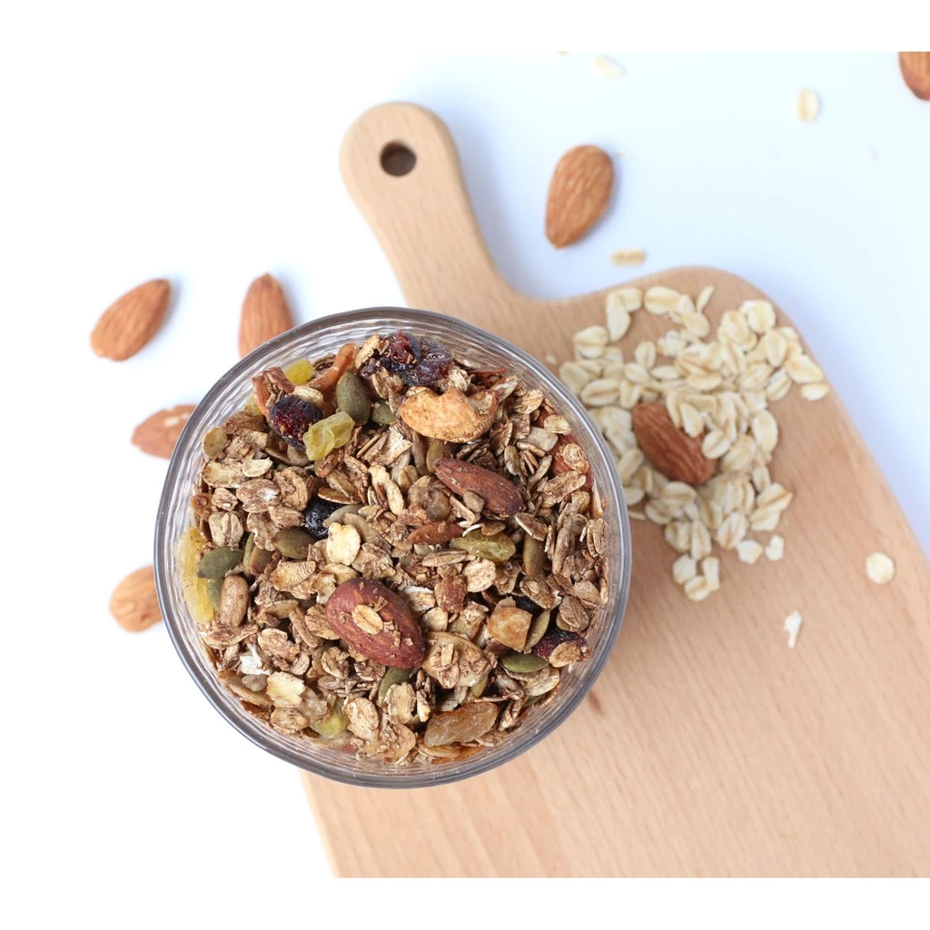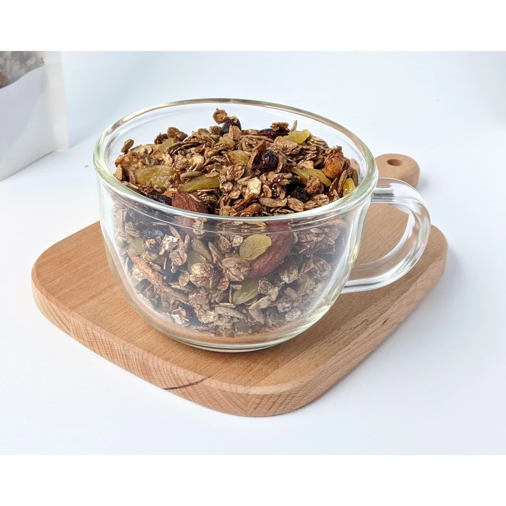 チョコレート味グラノーラで、毎日の食事がアート作品に変わります。様々な「Eat Clean(きれいに食べる)」スタイルでお楽しみください。• 濃厚な朝食に: 無糖牛乳や豆乳と混ぜてお召し上がりください。チョコレートの風味がミルクと溶け合い、非常に魅力的な「チョコレートミルクグラノーラ」になります。