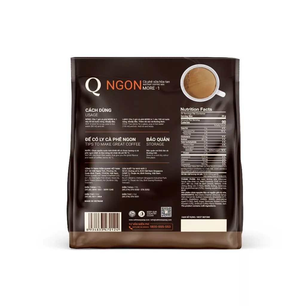 Tran Quang Delicious 3-in-1 Instant Milk Coffee (20g x 24 Sachets)