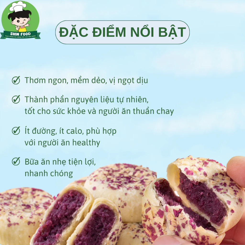 Shin Food Purple Sweet Potato & Taro Oatmeal Biscuits 1000g - Low Sugar, Low Calorie, Healthy Snack for Tet