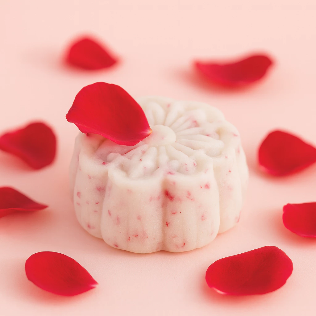 このケーキの魅力は、厳選された最高級の食材から生まれます。• 天然ローズエッセンス: ほのかで上品、そして清らかなバラ独特の香りを生み出します。