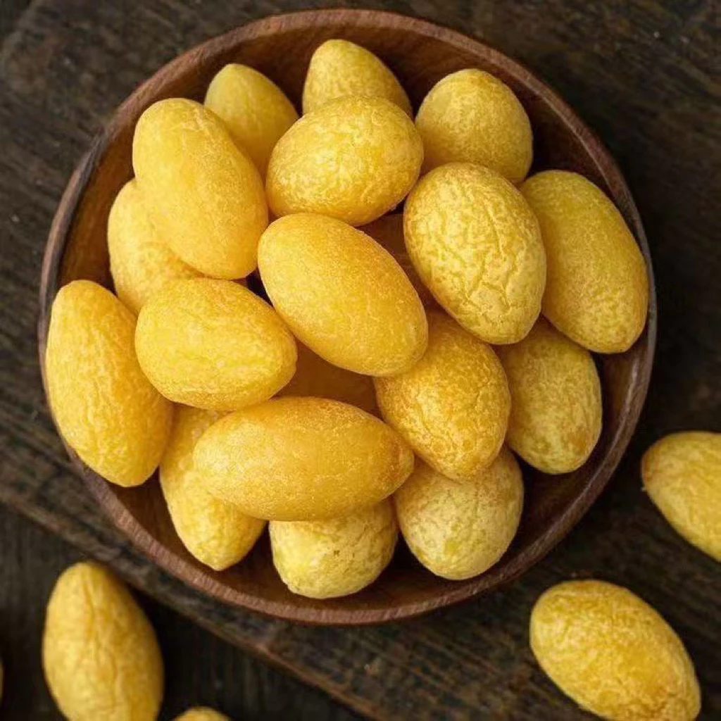 黄金甘草オリーブは、元来ヨーロッパ料理で親しまれてきたオリーブを、ベトナム人の好みに合う親しみやすいおやつへと見事に変身させた、独創的なアレンジです。黄金色に輝くみずみずしいオリーブの実が丁寧に漬け込まれており、従来の塩辛いオリーブとは異なり、まろやかな甘みと豊かなハーブの香りが特徴です。