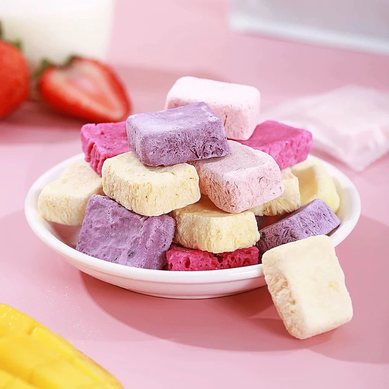 フリーズドライヨーグルトは、現在最も先進的な食品加工プロセスによって作られています。新鮮で美味しいヨーグルトは、適切に発酵された後、急速冷凍され、真空環境で乾燥されます。これにより、栄養構造を損なうことなく水分が完全に除去されます。
