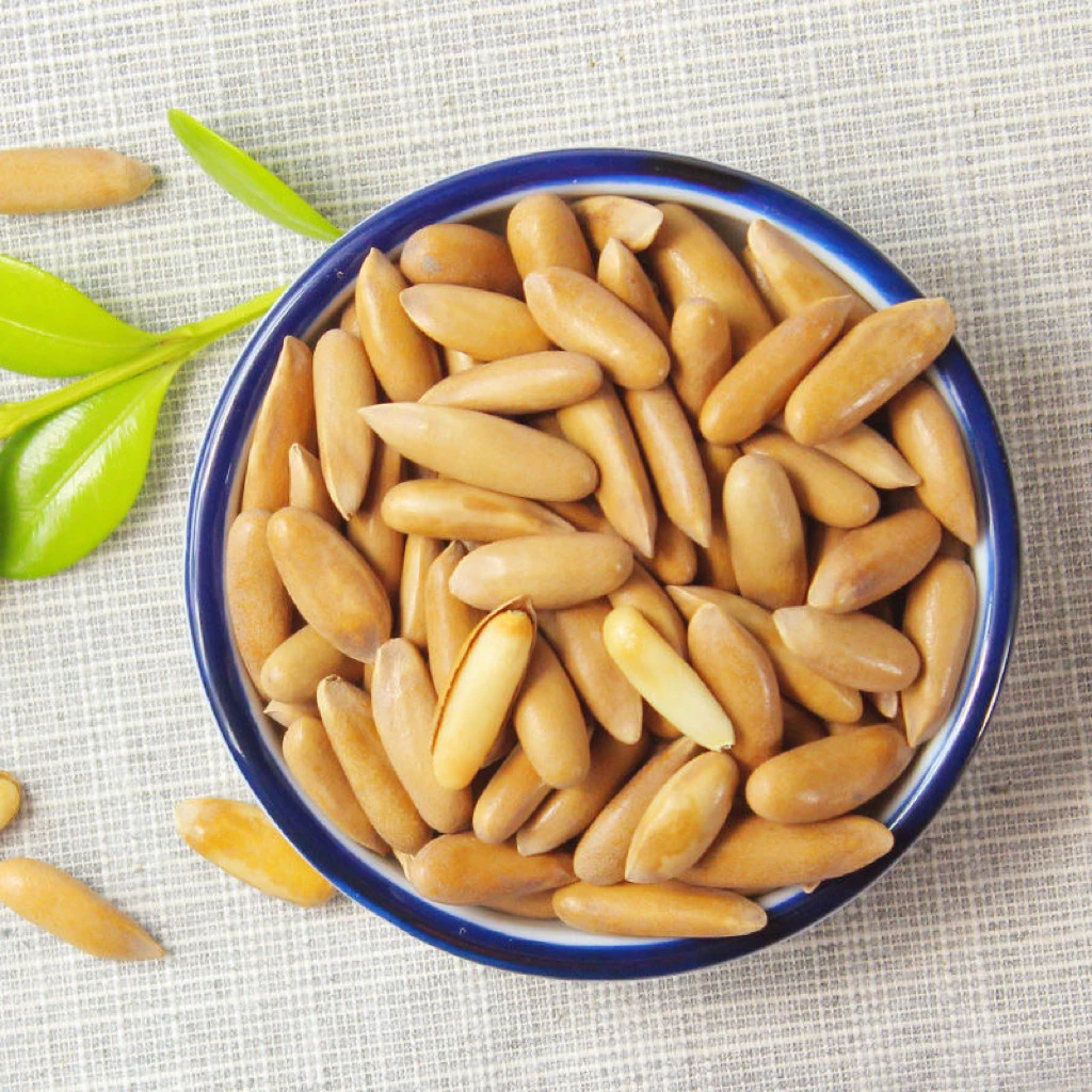 \nブラジル産パインナッツは油分が多く、風味を保つために丁寧な保管が必要です: