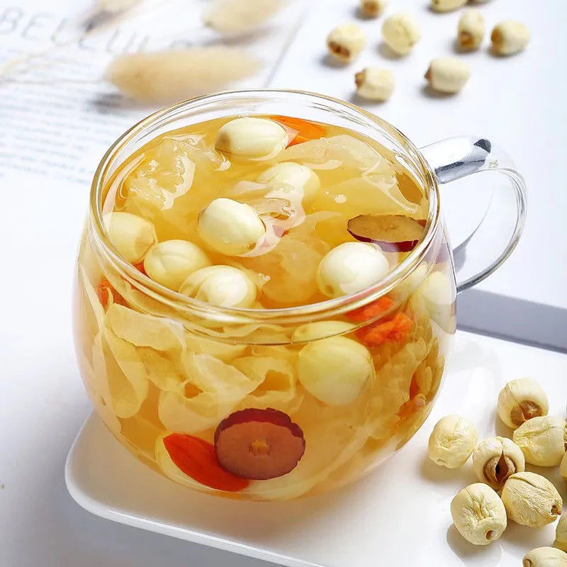 ・煮込み料理:豚足、烏骨鶏、鳩肉などと一緒に煮込むと、甘くまろやかなスープとホクホクの蓮の実が絶妙な滋養強壮スープになります。
