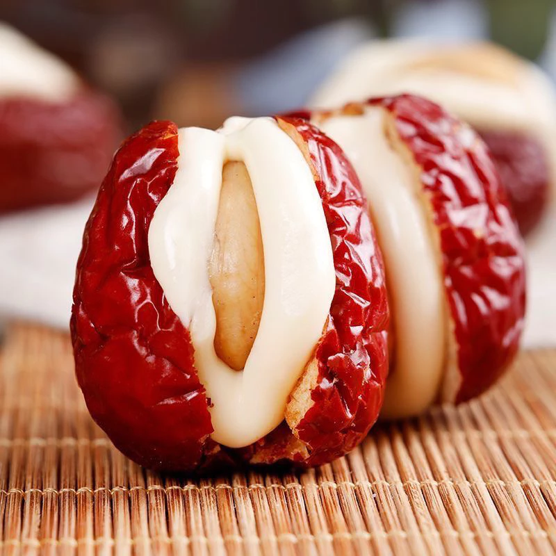 - **最高級紅ナツメ:** 種を取り除き、自然な甘さとモチモチとした食感をそのまま残した、みずみずしい紅ナツメ。