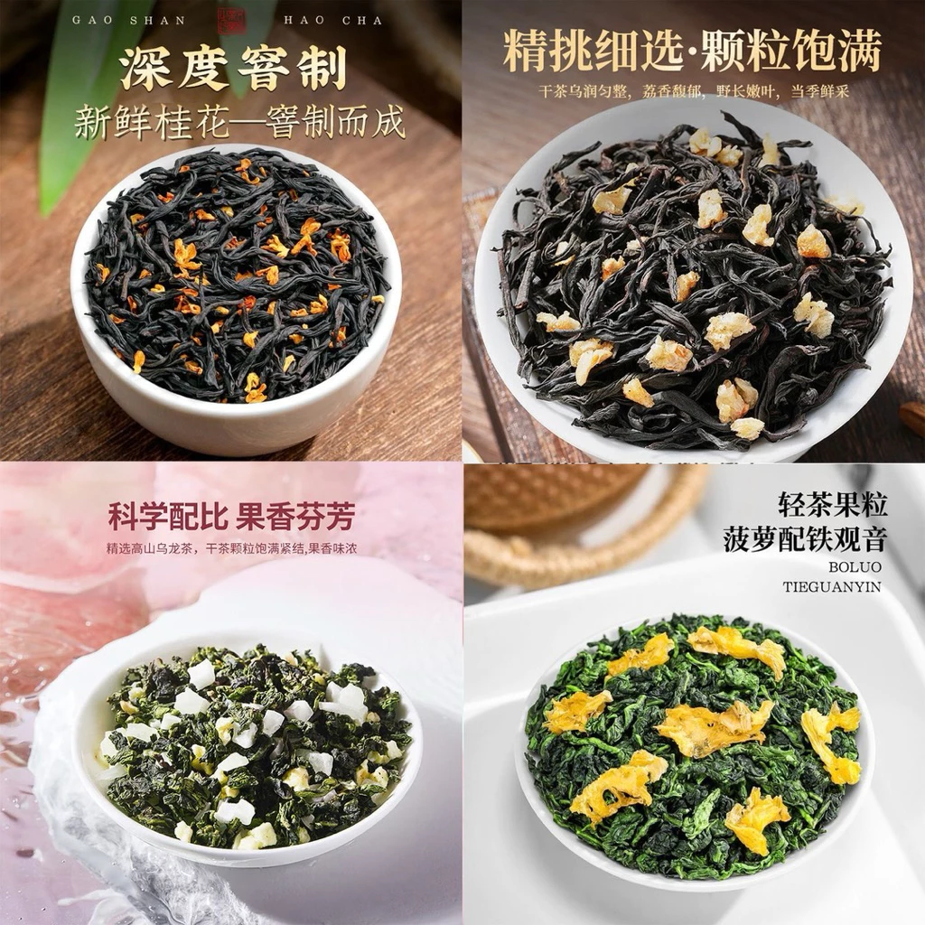 - 特級烏龍茶葉: 一芯二葉の若葉を手摘みし、ポリフェノールを最大限に保持するよう、厳格な製茶工程を経て作られています。