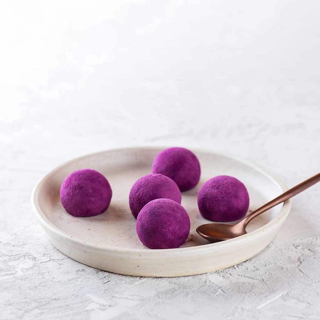 - 鮮やかな天然の彩り:有害な食品着色料の完璧な代替品です。紫芋の天然色は非常に安定しており、食欲をそそる美しい見た目を実現します。