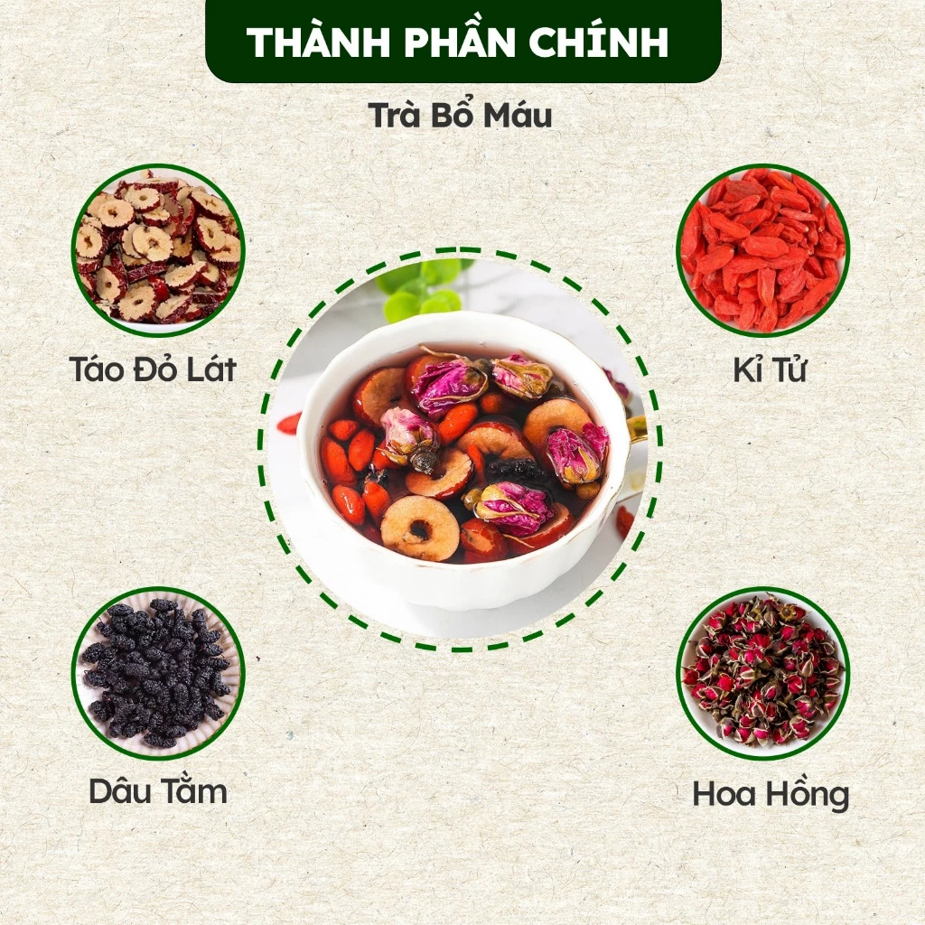 なつめ、クコの実、リュウガン、トウキ または トウジン (ブレンドにより異なる)