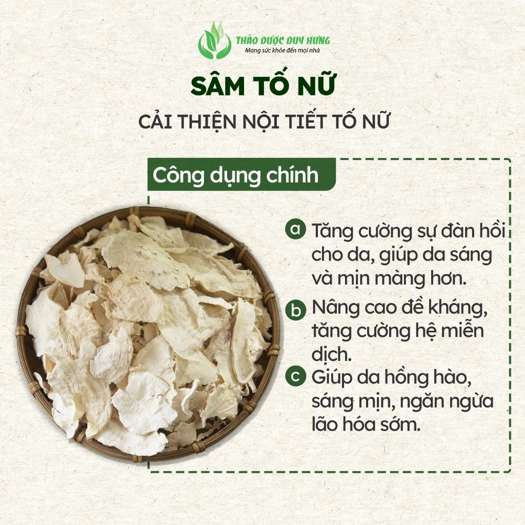 プエラリアミリフィカ(別名:サツマイモ葛)は、古くから東洋医学で、そして現代の研究においても「女性を若返らせる」特別なハーブとして知られています。Huyen Ha Shopの製品は、100gの便利なパックに、自然な乳白色を保ったまま薄くスライスされ、丁寧に乾燥されています。錠剤のサプリメントとは異なり、このスライスティーは純粋な形で提供され、体に必要な栄養素を自然かつ安全に吸収する最高の体験をもたらします。容量