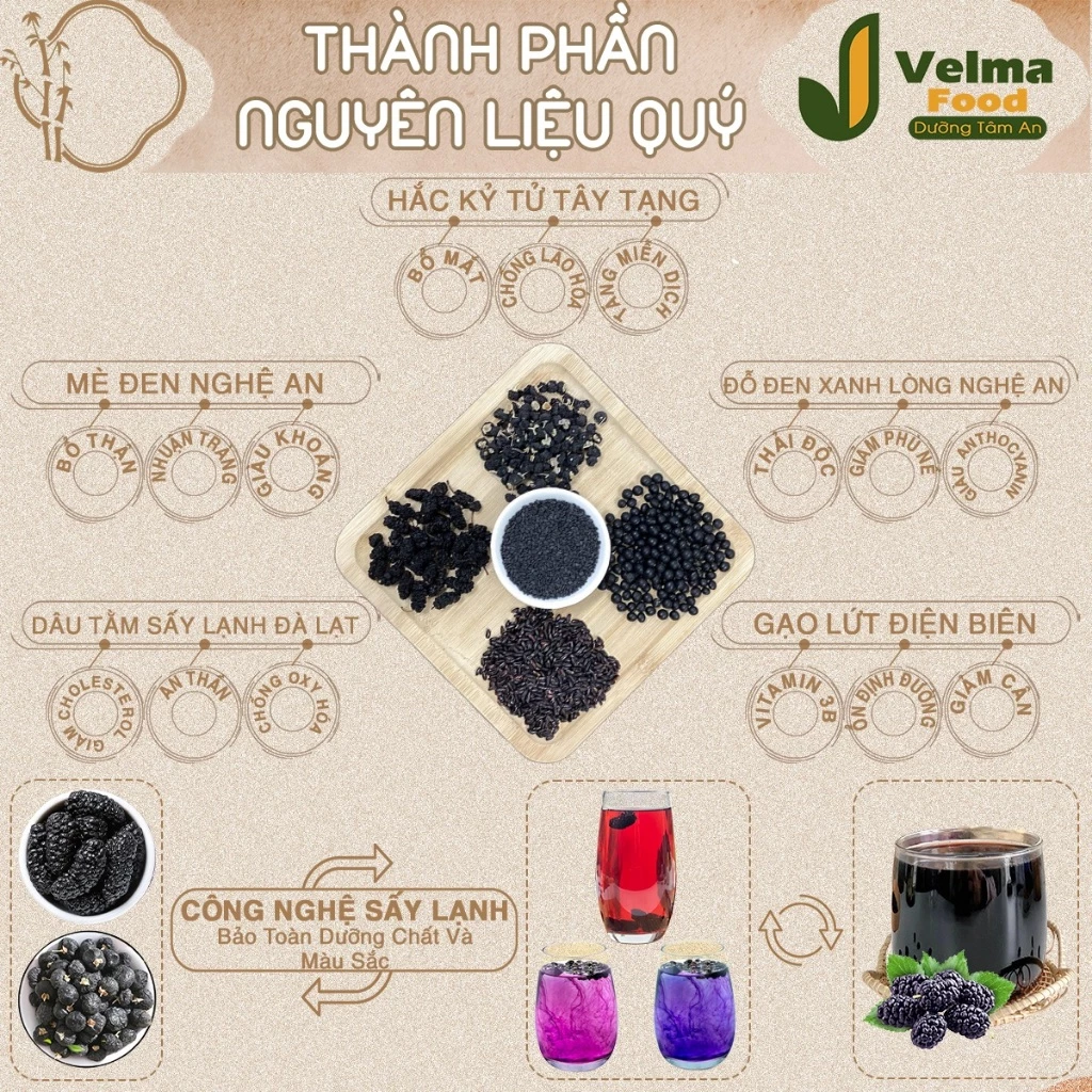 VELMA FOOD五黒茶の強みは、保存料を一切使用しない100%天然由来の成分にあります。以下の厳選された五黒の恵みが、あなたの美と健康をサポートします。